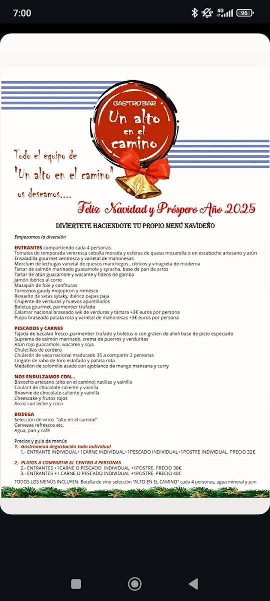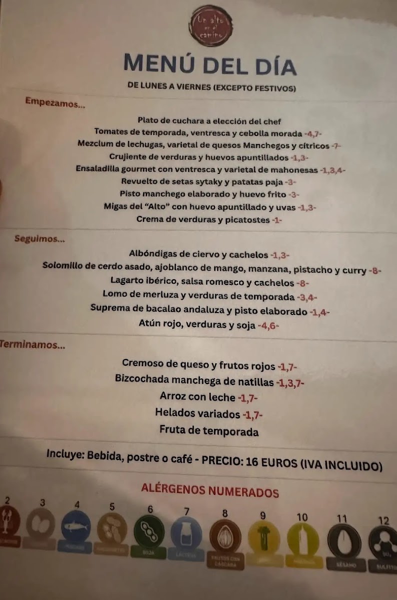 Restaurante Un Alto En El Camino Menu